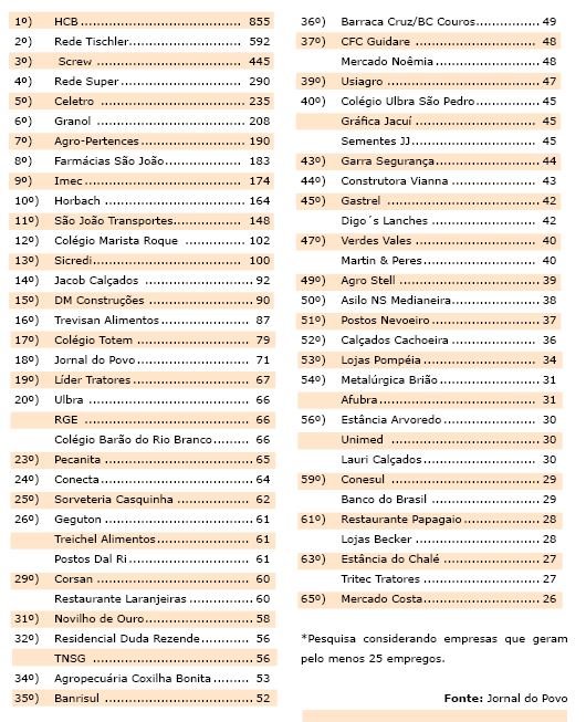 Os grandes empregadores de Cachoeira do Sul, segundo pesquisa elaborada pelo Jornal do Povo.
