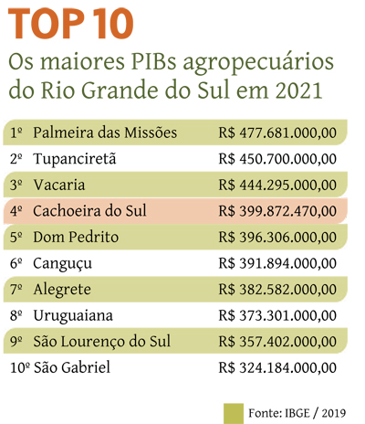 Os maiores PIBs agropecuários do Rio Grande do Sul em 2021