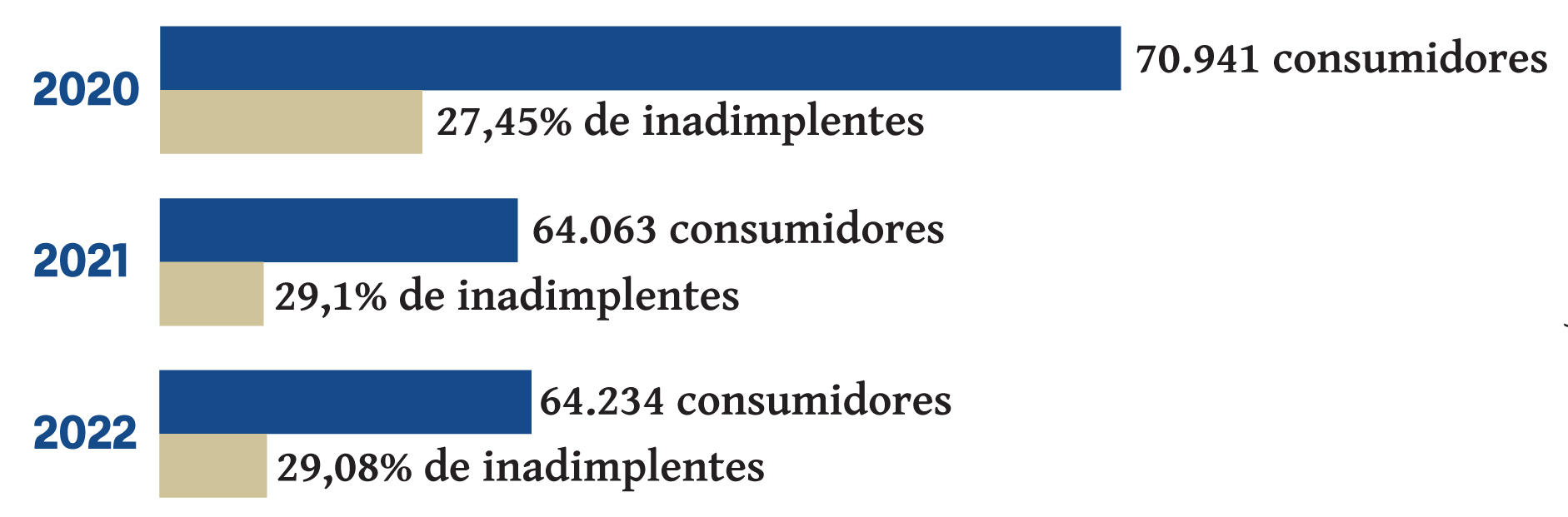 - Em 2022, quatro faixas etárias concentraram as maiores inadimplências no comércio cachoeirense, cada uma delas com mais de dois mil CPFs com, pelo menos, um restritivo para compras. A faixa etária dos 65 a 77 anos liderou o ranking, com 2.145 inadimplentes. Idosos acima de 65 anos, normalmente, são os maiores devedores, pois emprestam seus nomes para compra de familiares, que, depois, não quitam as parcelas.