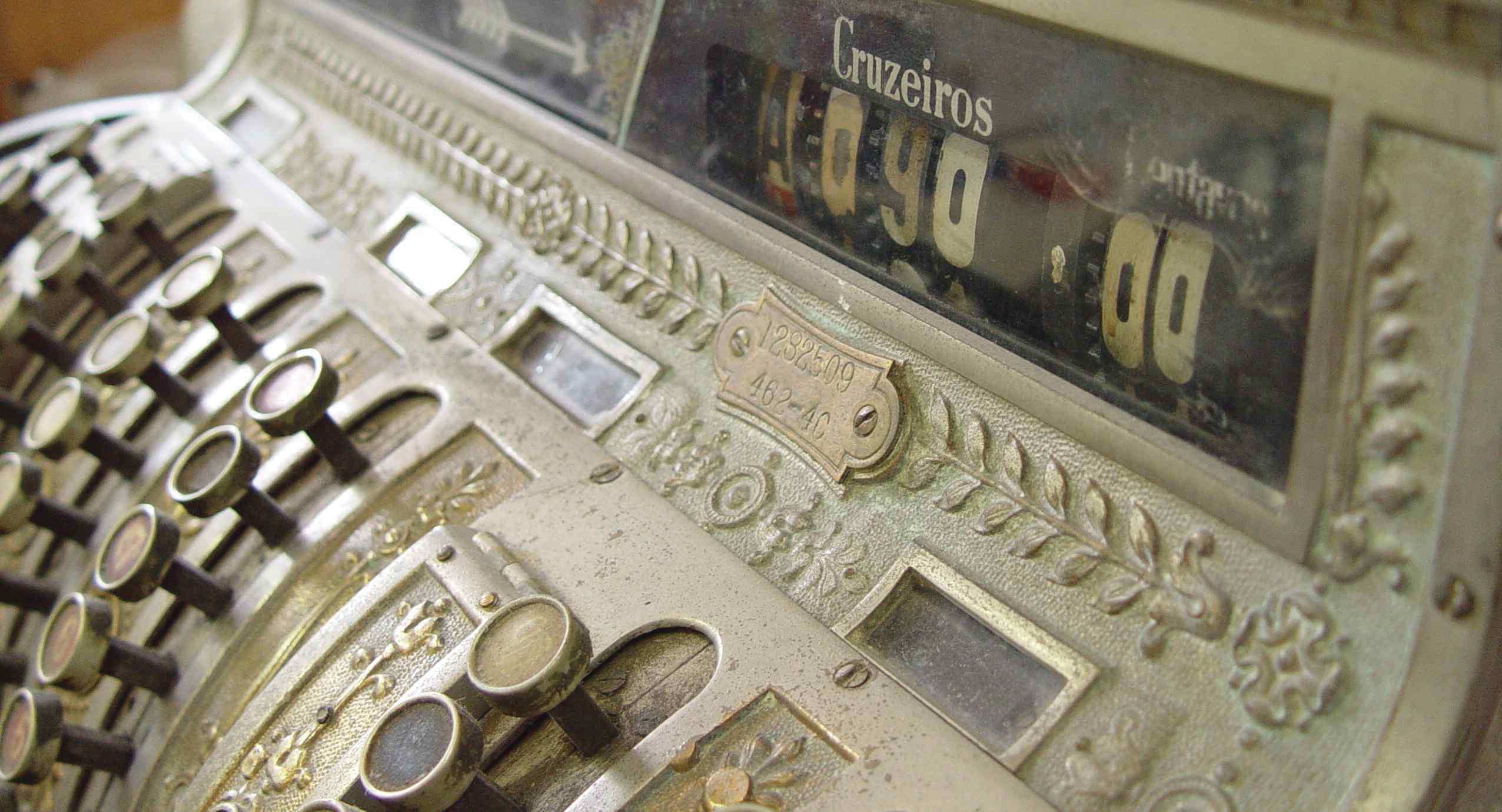 Antiga caixa registradora da Casa Arnoldo Tischler, relíquia do acervo histórico do comércio cachoeirense