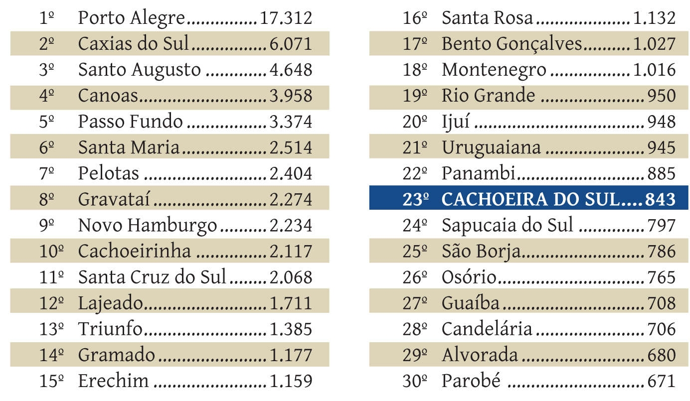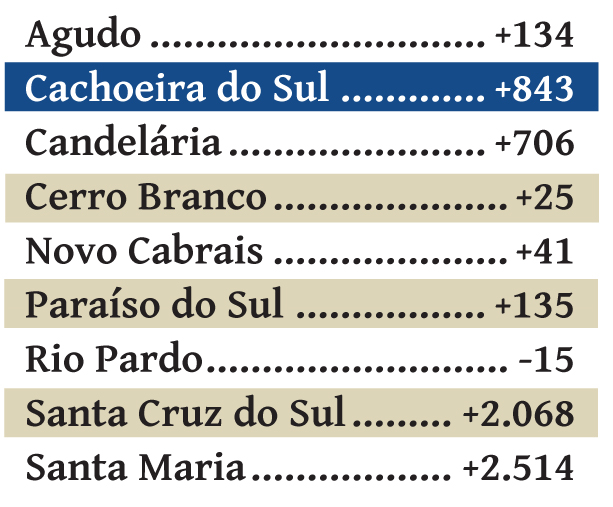 Das 497 cidades gaúchas, Cachoeira do Sul foi a 23ª que mais gerou empregos no Rio Grande do Sul em 2022, 843 contratações a mais que demissões.