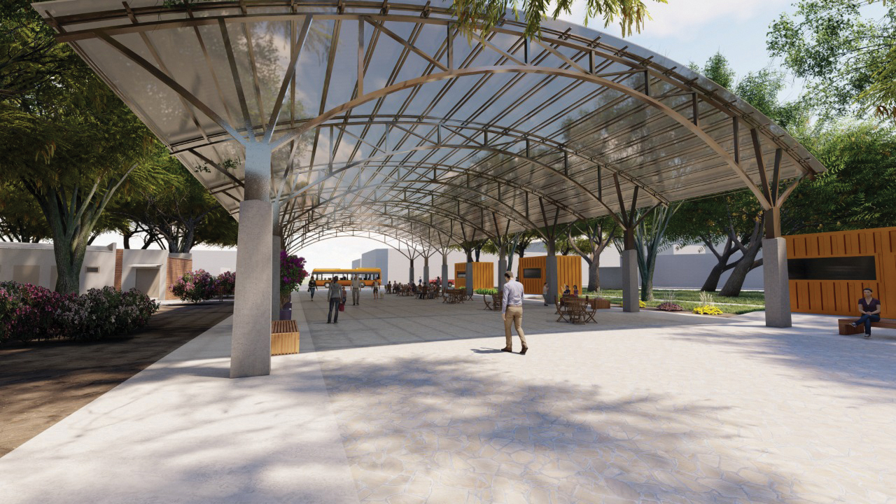 Obra já garantida em duas etapas por emendas parlamentares. Várias pistas e quadras esportivas serão implantadas do lado leste da praça. Licitação está reaberta. Inclui o novo camelódromo, com 12 lojas e espaço para depósito, pergolado, com área de circulação, e praça de alimentação com parklets.