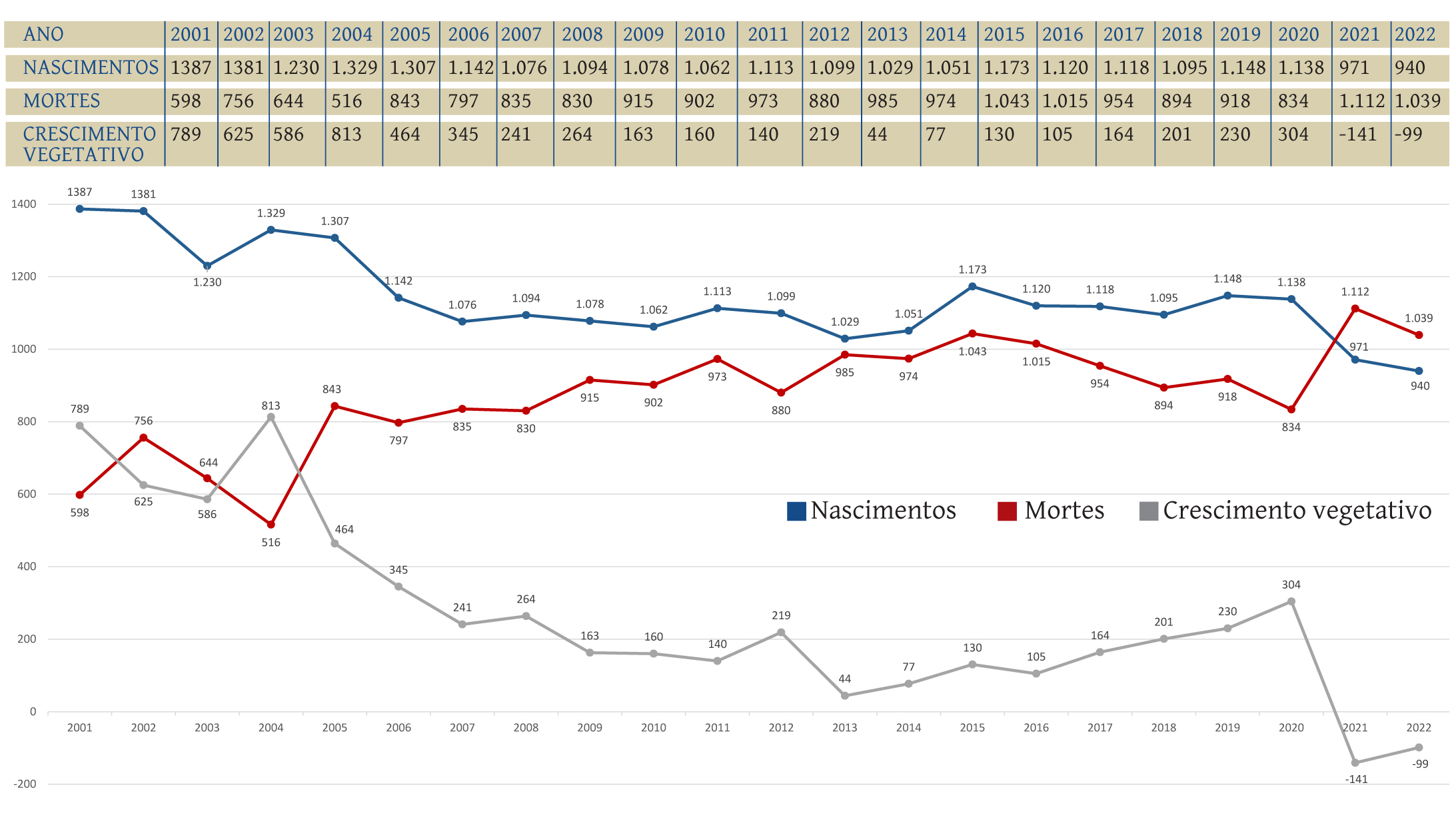 Em 2022, Cachoeira do Sul registrou um saldo final de 99 óbitos a mais do que nascimentos