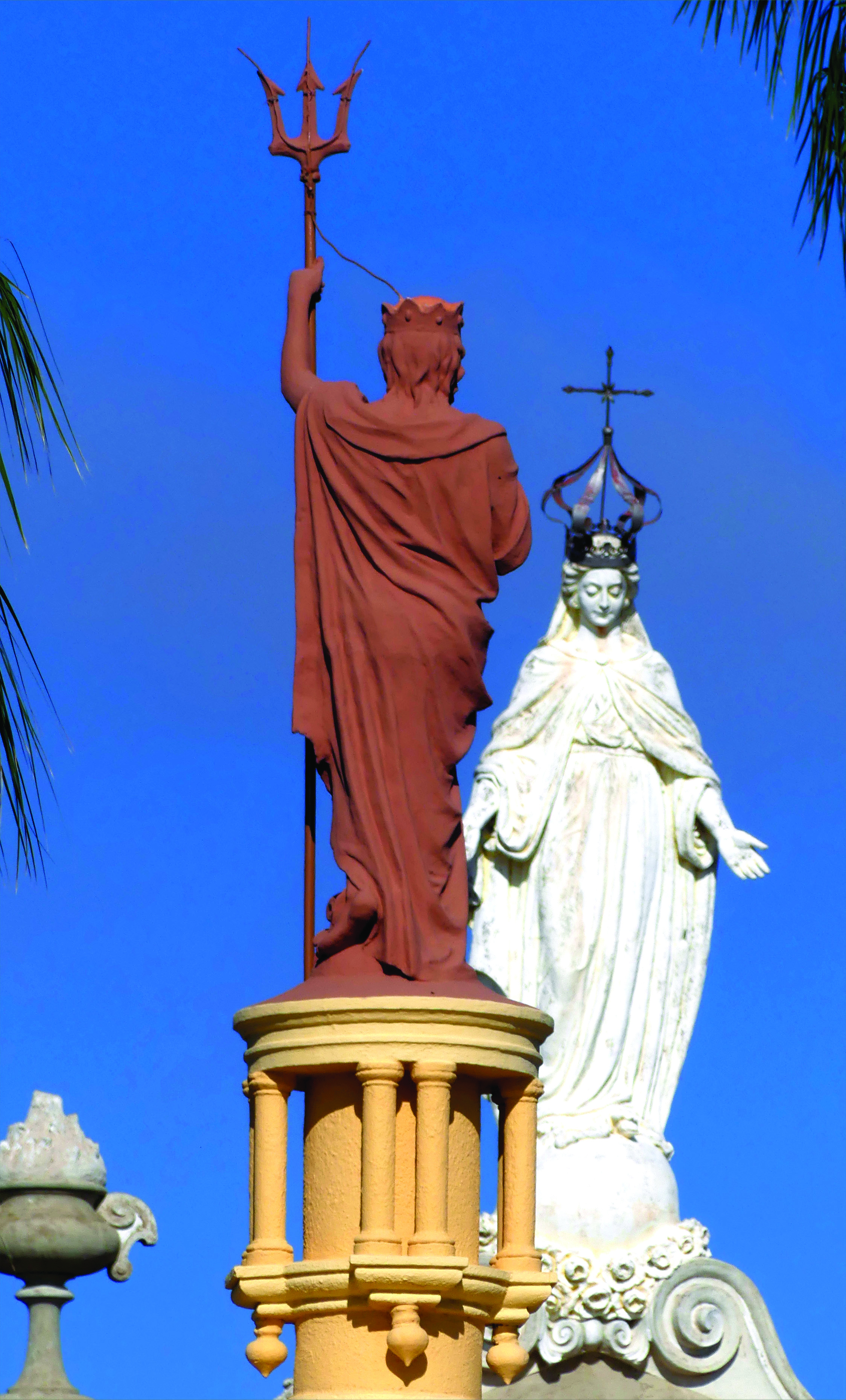 Adornado por ninfas e palmeiras e com o deus Netuno em seu topo, é um dos principais pontos turísticos em um dos conjuntos históricos mais ricos do município, formado ainda pelo prédio do Museu Municipal que no passado era a Casa de Câmara e Cadeia, e a Catedral Nossa Senhora da Conceição. Seguindo pela Rua 7 de Setembro, é possível visitar o Palácio Legislativo João Neves da Fontoura, construído originalmente para sediar um banco.