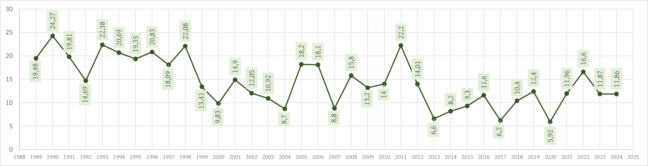 O índice, ainda extraoficial, ficou em 11,86 mortes por mil nascidos vivos em 2024 — praticamente o mesmo de 2023, que foi de 11,87 por mil. No entanto, esse número pode sofrer alteração caso seja confirmado até o final de 2025 o falecimento de algum bebê cachoeirense ocorrido em outro município ao longo de 2024.