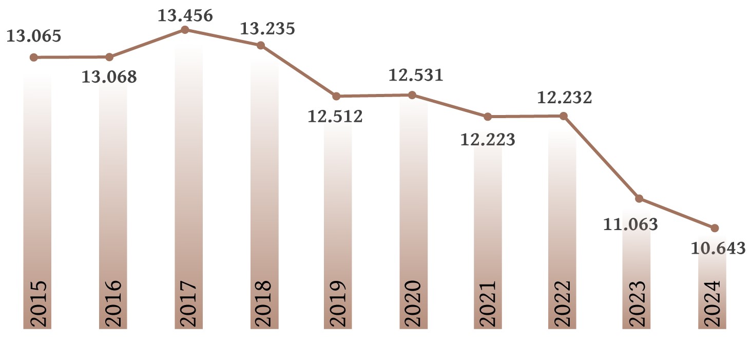 O levantamento aponta que o município segue em trajetória de redução no número de estudantes da educação básica, reflexo da diminuição populacional e da queda no número de nascimentos nos últimos anos. Na comparação com 2015, quando a rede pública atendia 13.065 alunos, a retração é ainda mais expressiva: 2.422 matrículas a menos, o que representa uma queda de 18,53% ao longo da última década.