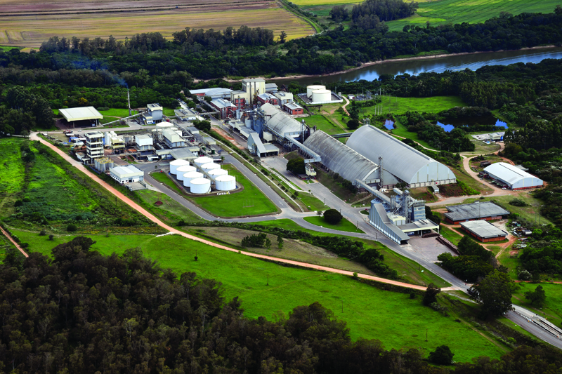Produção de 35 toneladas por dia. Para tocar a produção são necessárias 55 toneladas de vapor para a caldeira, o que demanda 350 toneladas por dia de cavaco de madeira, o equivalente a 1,6 campo de futebol de eucaliptos plantados.